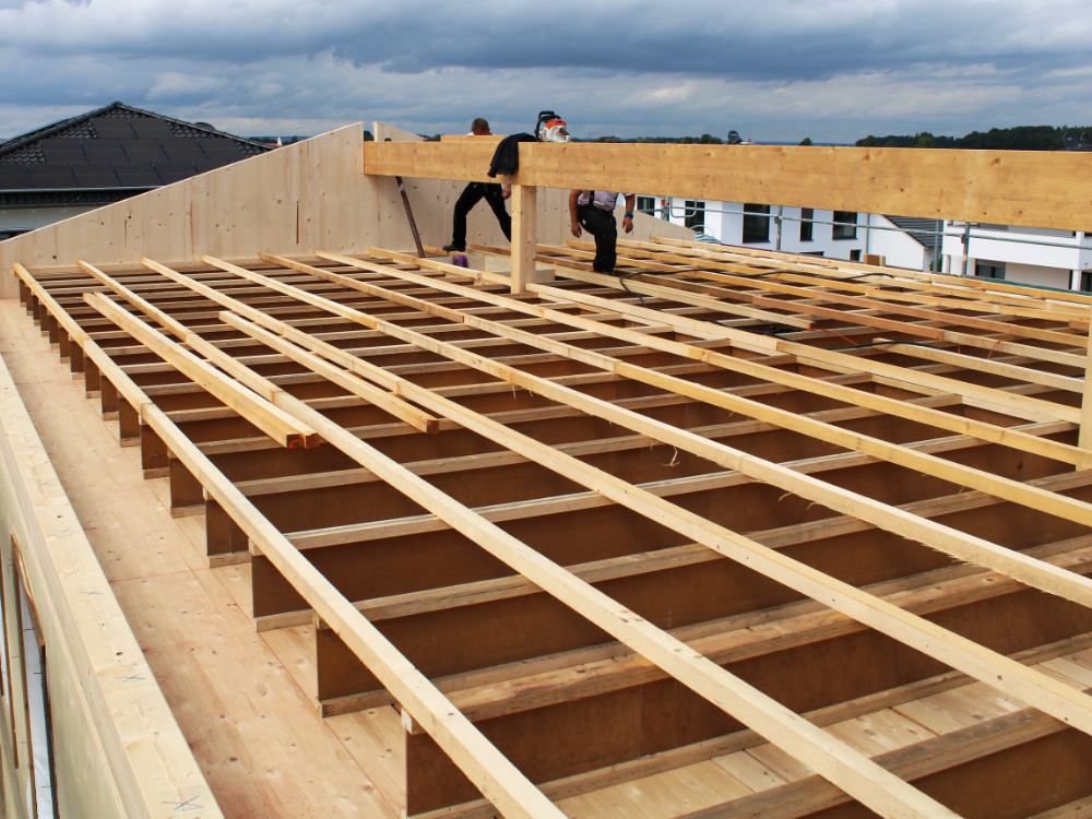 Vorteil der Holzrahmenbauweise ist, das Holz im Verhältnis ein geringes Eigengewicht jedoch aber eine hohe Tragfähigkeit besitzt.